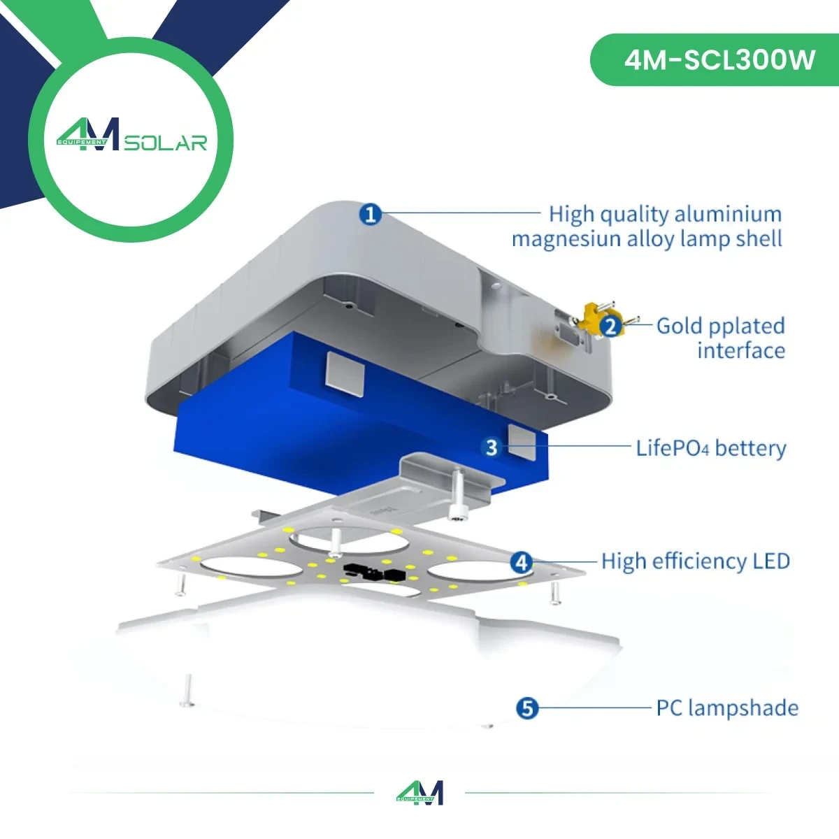 Luminaire Solaire de Plafond 4M SOLAR 4M-SCL-300W